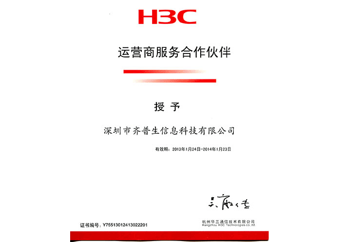 H3C运营商服务合作伙伴证书