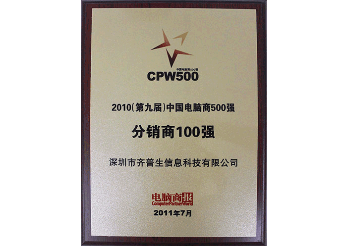 2010年电脑商500强分销商100强并获“最佳IaaS方案服务提供商”