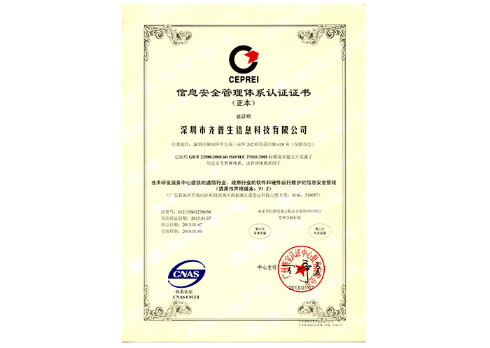 ISO/IEC 27001信息安全管理体系认证证书
